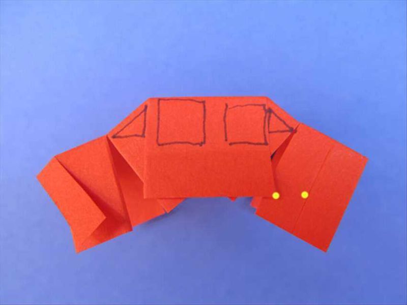 - Нарисувайте очите в огънатата област.