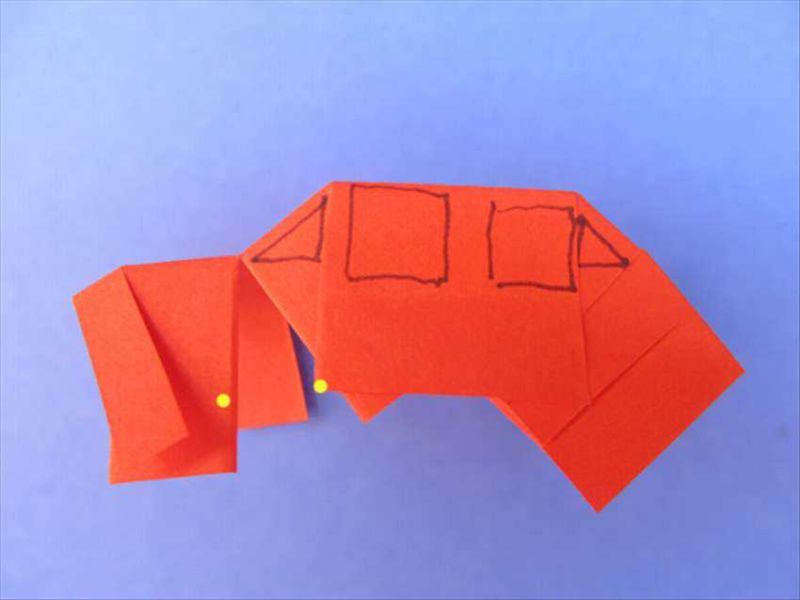 - Сгънете горната част на долния ъгъл, за да наподобява нос и отворена уста.