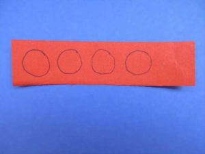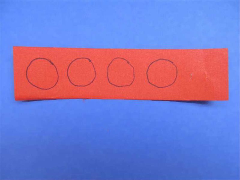 - Изрежете правоъгълник (приблизително 10*25) и четири кръга с еднакъв диаметър от лист хартия в сив, син или стоманен цвят.