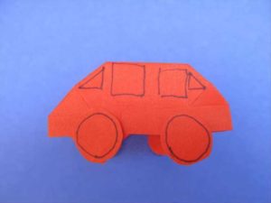 Какво ви е необходимо: Изображение на автомобил, разпечатано от интернет, скицник, цветни моливи и флумастери, лепило, ножица.