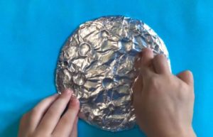 - Разточете топка от обикновена хартия и я увийте във фолио. Размерът на "планетата" трябва да съответства на размера на подложката.