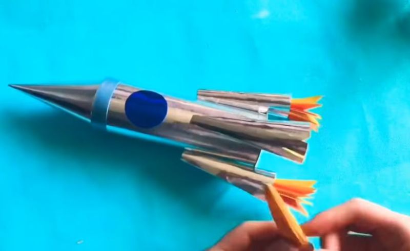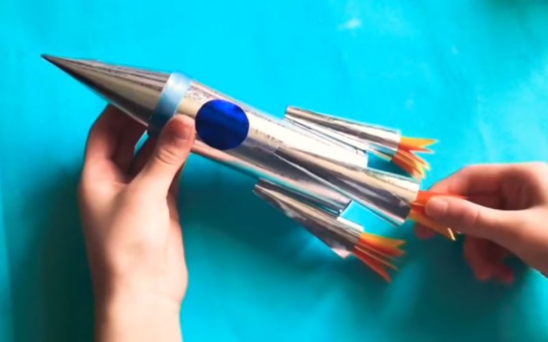 Корабът е готов. Ако авторът желае, може да го направи по-интересен, като обвие пластмасовата бутилка със злато или я напълни с брокат, който ще блести по време на "полета".