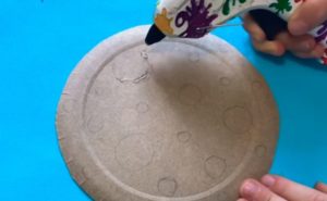 - Прикрепете топката към картона с помощта на пистолет за лепене.
