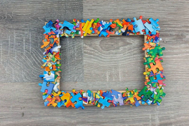 Създаването на такива неща не изисква много време. За основа е взета рамка с размери 10*15. С помощта на пистолет за лепене към него се прикрепят различни декоративни елементи. Например изрезки от стари моливи, разглобени парчета пъзел, клони от дървета, кафе на зърна, изкуствени цветя и др.