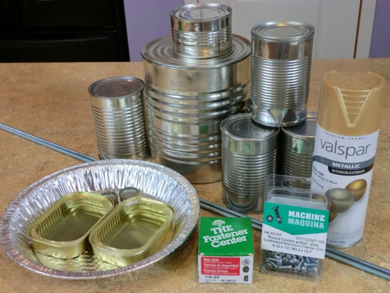 Какво ви е необходимо: 2 кутии с различни размери, кутия, 2 алуминиеви лъжици и 2 вилици, 2 капачки за бутилки, 1 тапа за вино, флумастери, пистолет за лепене.