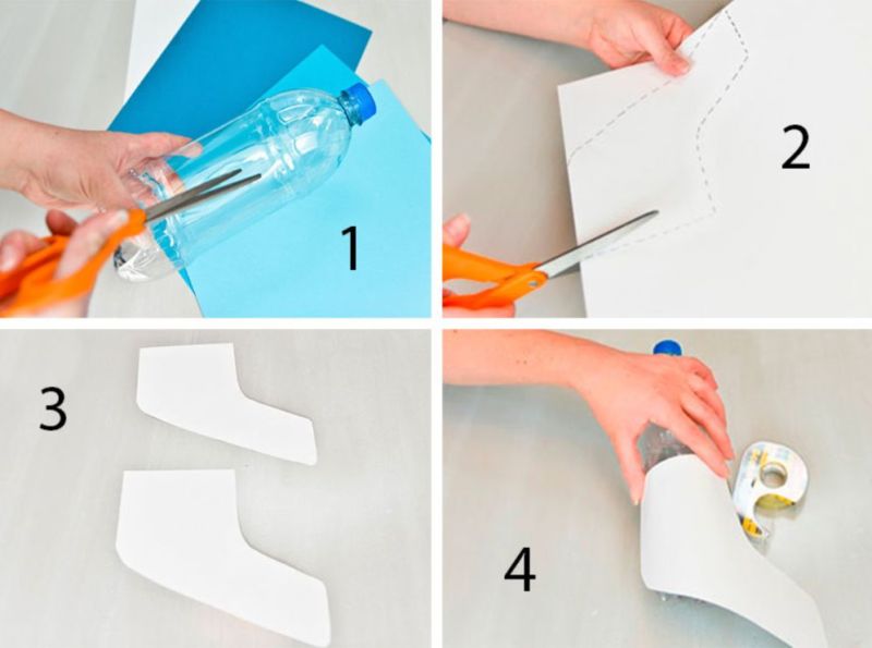Какво ви е необходимо: бутилка от 0,5 л, цветен картон, флумастери, лепило, ножица.