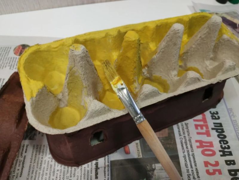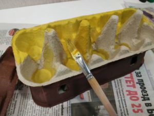 Какво ви е необходимо: Ръкав от тоалетна хартия, картон, велпапе, гваш, лепило, ножица, четки.