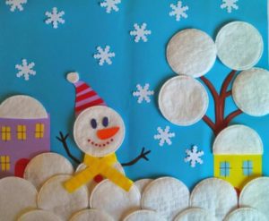 Ако правите приложение върху голям лист хартия, залепете памучни дискове като играчки. Оцветете ги с различни цветове.