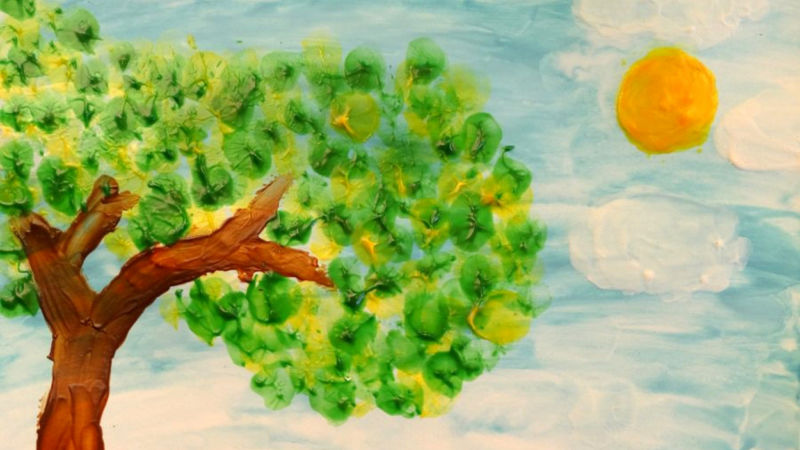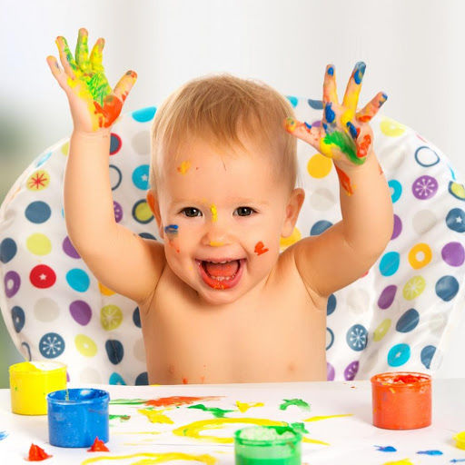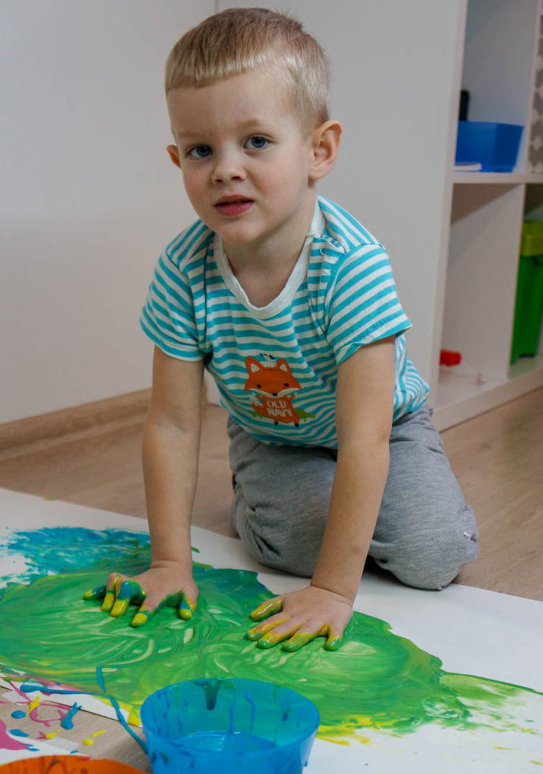 С тях детето може да движи пръста или дланта си по хартията и да види, че боята оставя следи. Тя може да бъде под формата на точки, райета или щампи.