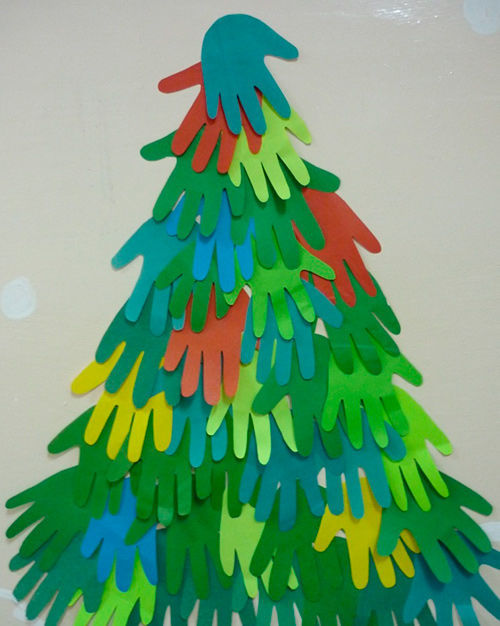 Вместо триъгълници можете да изрежете ленти от зелена хартия, да ги сгънете наполовина и да ги използвате като клонки, като ги залепите на редове. Апликацията ще бъде триизмерна. Можете също така да залепите украса за коледната елха върху нея.