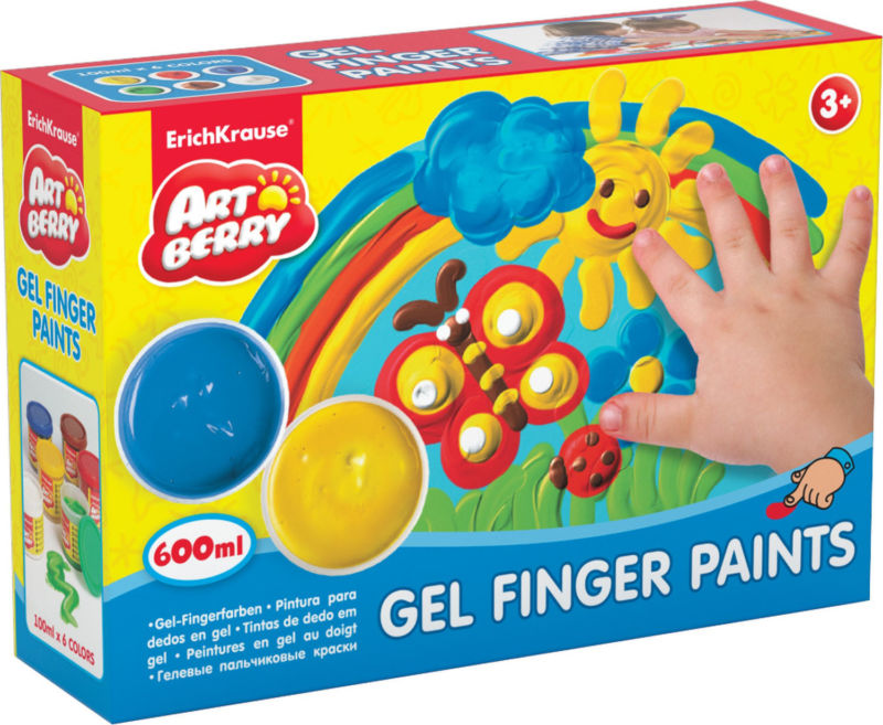 Цветовете на гел боите за пръсти са базирани на хранителни оцветители. Цветовете се отмиват лесно от всяка повърхност, тъй като са на водна основа. С тях можете да рисувате върху хартия, картон, плочки или върху тялото си.