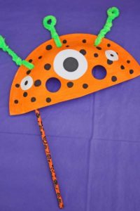- Украсете торса с малки сплескани топчета и прикрепете рогата. Сега можете да поставите гъсеницата върху растение в саксия.