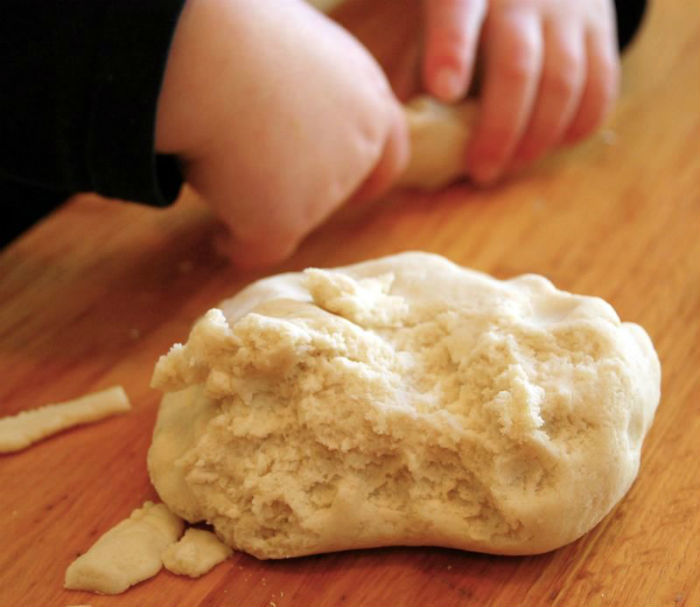 Бебетата могат да бъдат насърчавани да разточват тестото с точилка, да натискат малки предмети в него, да го слагат във форми на кубчета и да правят прости занаяти.