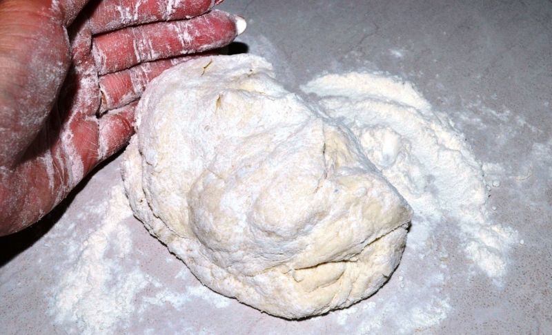 Приготвянето на тестото е лесно. Добавете половин чаша фина сол и същото количество вода към една чаша пшенично брашно. Всичко се омесва старателно. Към тестото се добавя една супена лъжица растително масло, за да стане по-гъвкаво.
