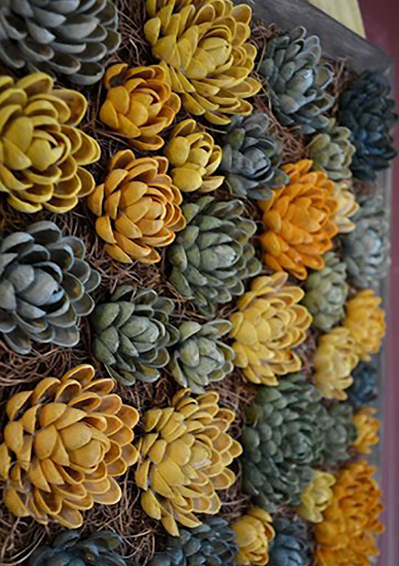 Ако в семейството ви има любители на шамфъстъка, не изхвърляйте черупките. Те могат да се превърнат в изящни цветя, които, поставени в рамка, ще радват окото с великолепието си.