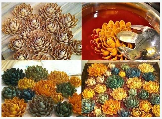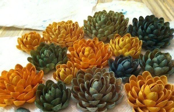 - След това добавете още черупки от всяка страна. Колкото повече са черупките, толкова по-обемно е цветето. Крайният резултат трябва да е цвете, подобно на лотос.