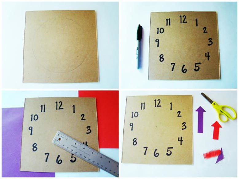 - Изрежете от картон основата на часовника в произволна форма.
