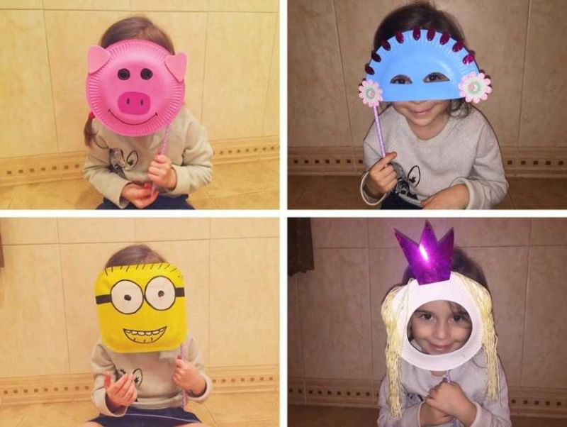 От чинии за еднократна употреба детето в предучилищна възраст може да си залепи костенурка, муцуна на мече или друго животно, цвете или пеперуда.