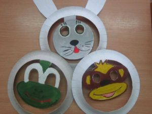 По подобен начин се изработват муцуните на различни животни. Достатъчно е да изрежете ушите, очите, носа и да ги залепите върху чиния, която ще бъде главата.