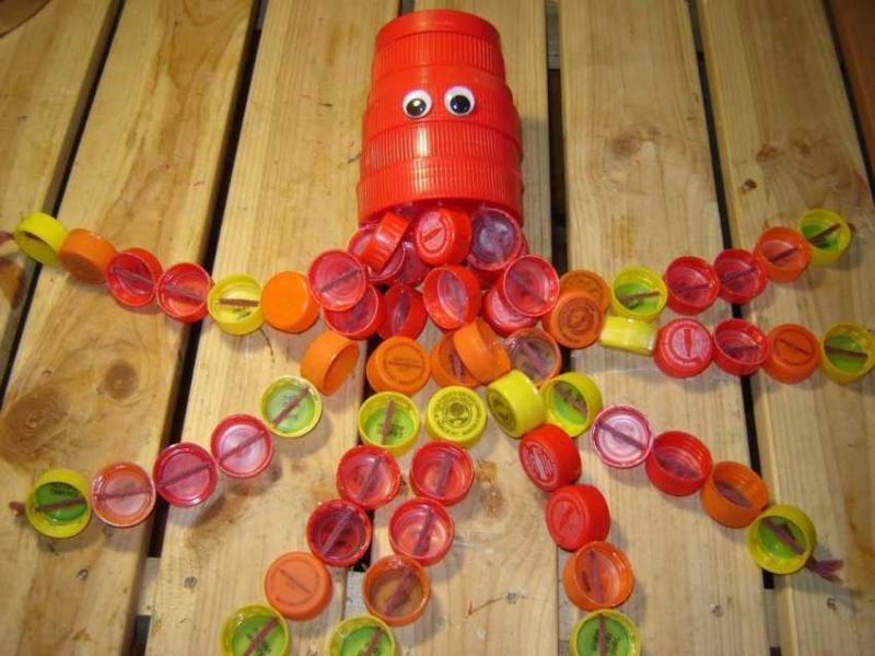 Пластмасовите бутилки не само служат за основа на творчеството, но имат и важен елемент - капака, който може да се използва за изработване на всякакви занаятчийски изделия за дома от ненужни вещи.