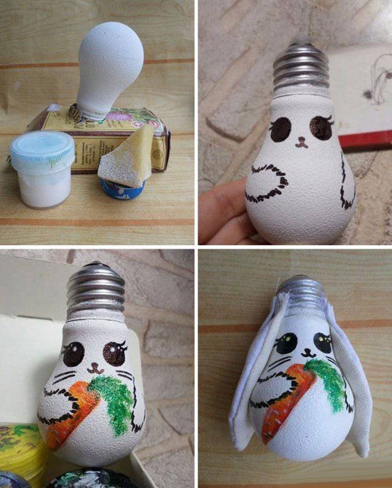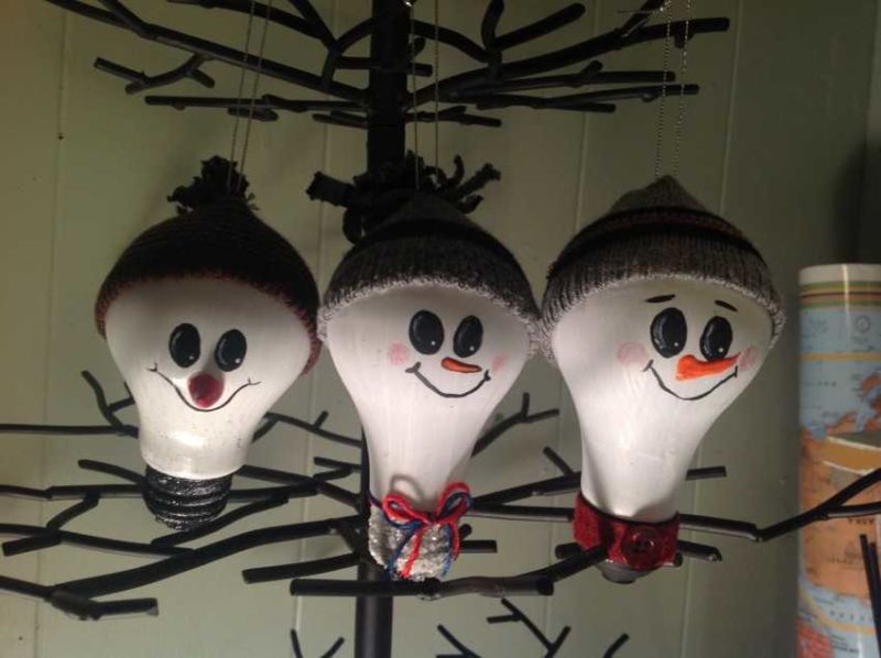 Най-бързият и лесен начин е да боядисате електрическа крушка в любимия си цвят и да нарисувате смешно лице или лице на животно, Дядо Коледа (с брада от вата) или Снежанка (с коса от конец).