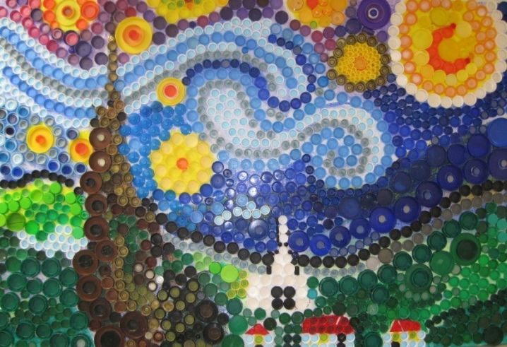 Най-често срещаното приложение на капачка от бутилка е в картини или пана за стена. Те са лесни за приготвяне и не ограничават въображението ви.