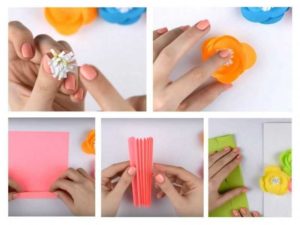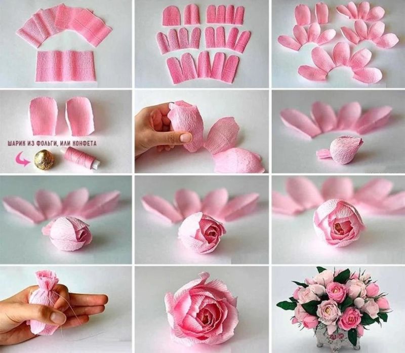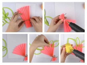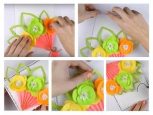 Флоралните композиции от намачкана и гофрирана хартия изглеждат много по-интересни и правдоподобни от обикновените апликации.