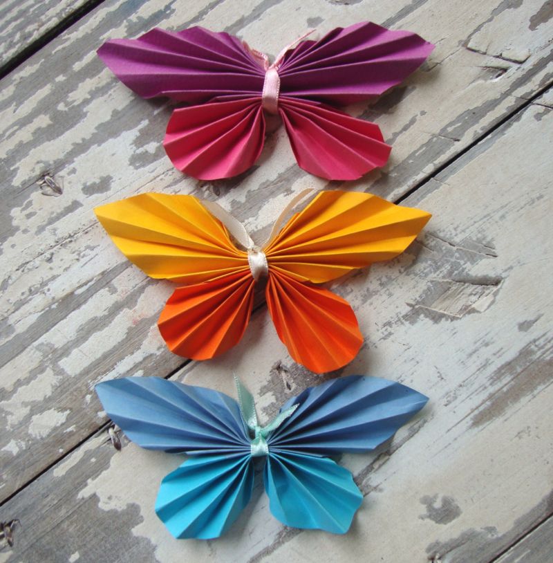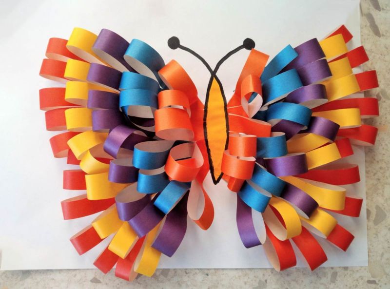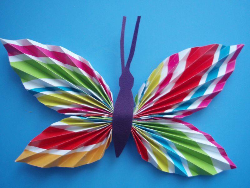 Най-популярната тема са пеперудите. Ако детето знае как да направи ръчна изработка от цветна хартия, предложете му няколко примера за изработване на пеперуди: