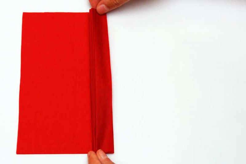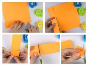 Най-лесно е да се направят хартиени занаяти под формата на книжка от квадратен или правоъгълен лист, навит на четвъртинки, както е показано на снимката.