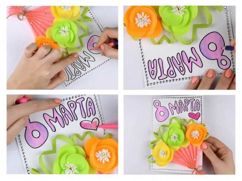 Разглеждайки илюстрации на това, което може да се направи от хартия с дете на начално ниво на работа, много от тях избират поздравителни картички. Предната част не трябва да се боядисва, а да се апликира.