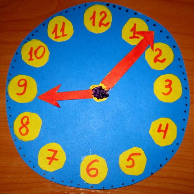 Основата е най-добре да бъде изработена от велпапе. Начинът на изписване на числата моно варира. Усложнете задачата с двуцифрени числа, така че децата да разберат 12 и 24 часа в денонощието.