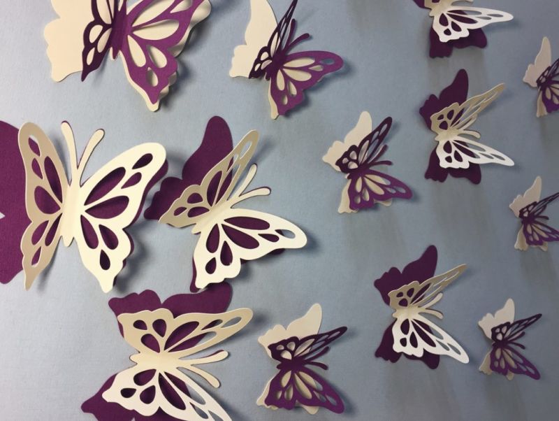 Добра идея е да си направите домашен полилей с пеперуди, изрязани по шаблон.