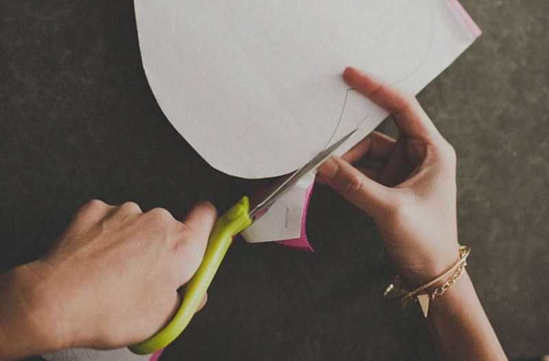 Внимателно сгънете изрязаното парче, за да го направите симетрично, залепете трите части, като оставите горния ъгъл свободен.
