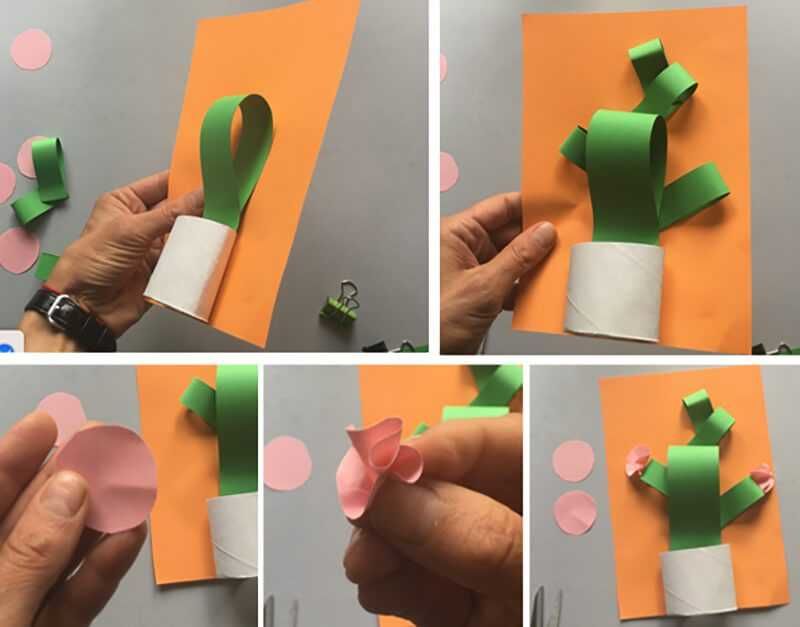 - Кактуси от хартия. Ако котките ви ядат стайни цветя на первазите на прозорците, можете да ги скриете под мрежа на остъклена лоджия и да украсите первазите с хартиени кактуси. Това е по-сложно ниво от маргаритката, тук се нуждаете от обем, който се постига чрез свързване на "ребра" от еднакви парчета, направени по шаблон.