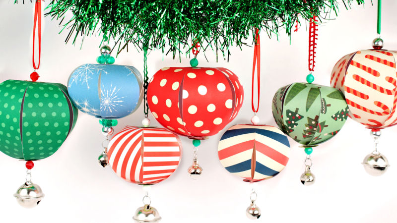 Коледните украси от опаковъчна и цветна хартия, картон, фолио, дискове от памучна вата и всякакви податливи материали изглеждат не по-зле от стъклените топчета.