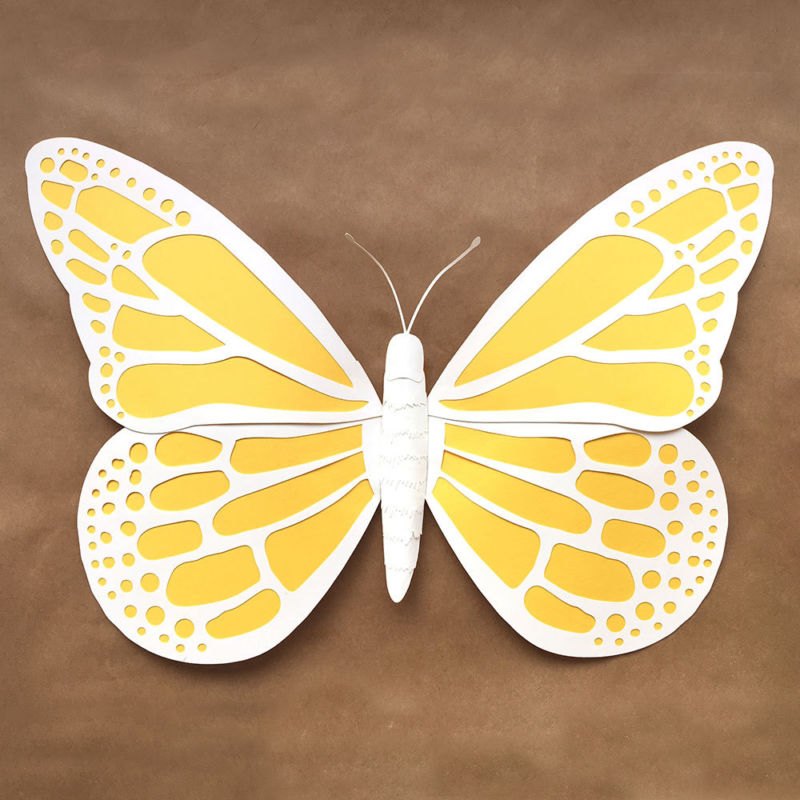 Деликатните пеперуди с двойни крила, изрязани по шаблон, могат лесно да украсят абажур и настолна лампа. Най-красивите пеперуди могат да бъдат грижливо прикрепени към кухненските завеси навреме за пролетта.