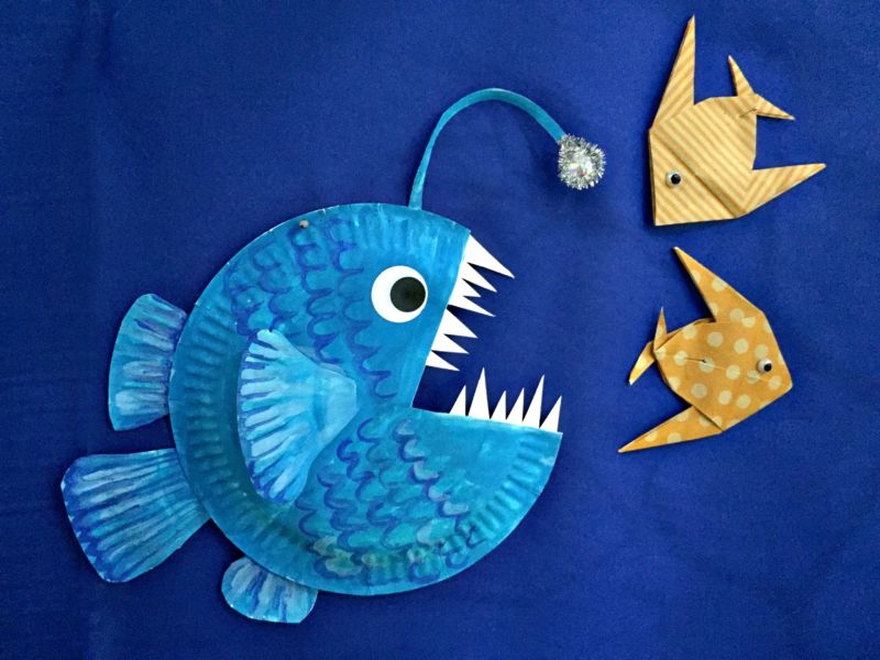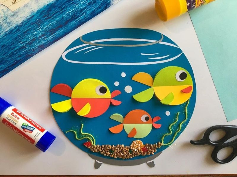Една от най-популярните теми е за обитателите на аквариума. Когато работите с децата върху най-лесните занаяти от хартия, можете да им предложите да научат различни техники.