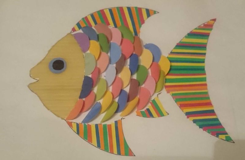 Най-лесният начин е да сглобите рибка от цветни кръгчета. Можете да си поиграете със задачата, например да промените формата на тялото или да добавите опашки с различна форма.