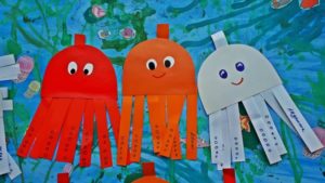 Задачата може да се усложни, като се изработи по-интересен предмет от хартия под формата на необичаен обитател на моретата и океаните с пернати пипала.