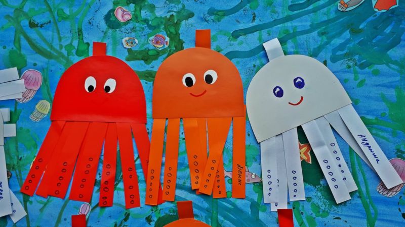 Темата за морските обитатели е много популярна. Медузите могат да бъдат изработени по различни начини, включително плоски и обемни модели.