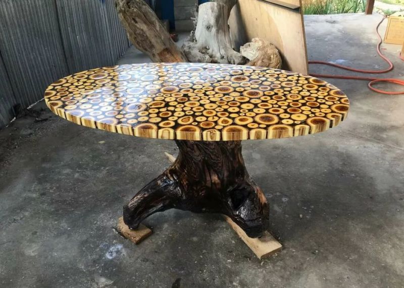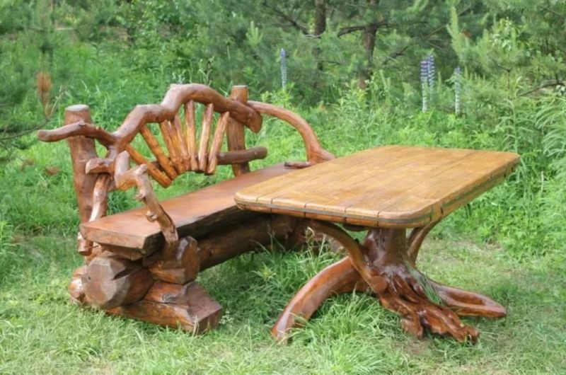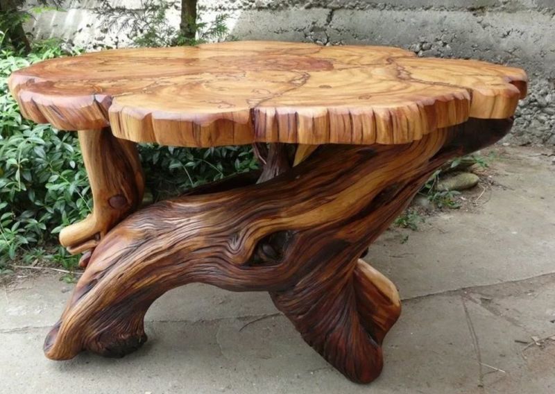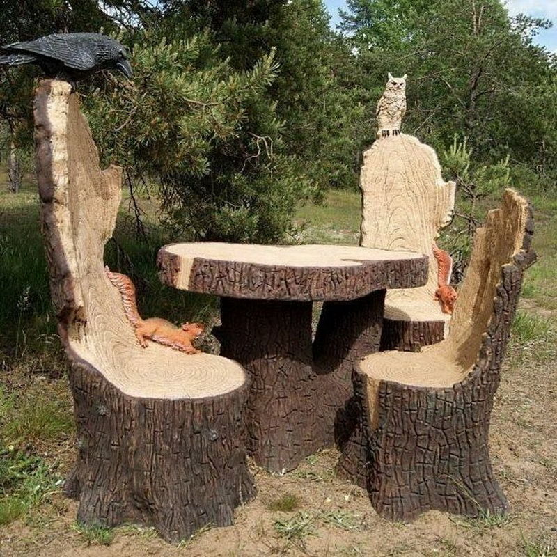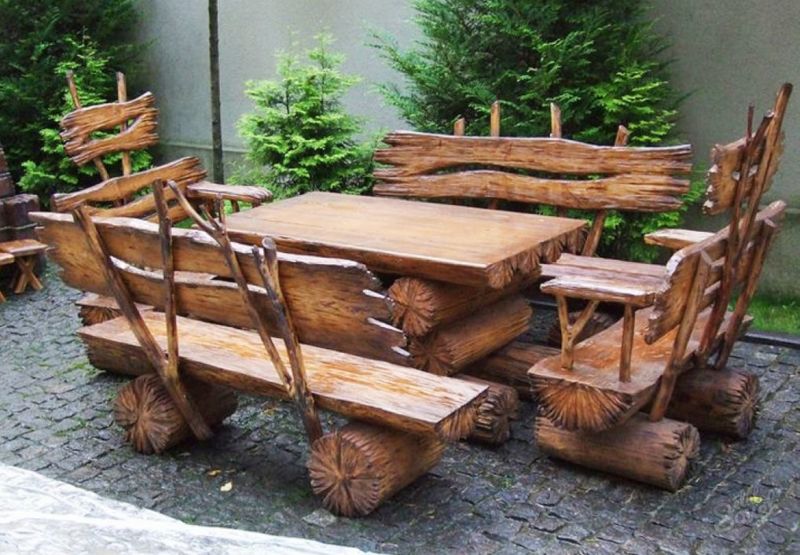 Уникалните дизайнерски решения, прилагани в двора и градината, могат да представят околността с уникална пейка, изработена от дъски или дебели клони, масивна маса, направена от голям пън, отрязан за по-лесна употреба, и много други красиви продукти.