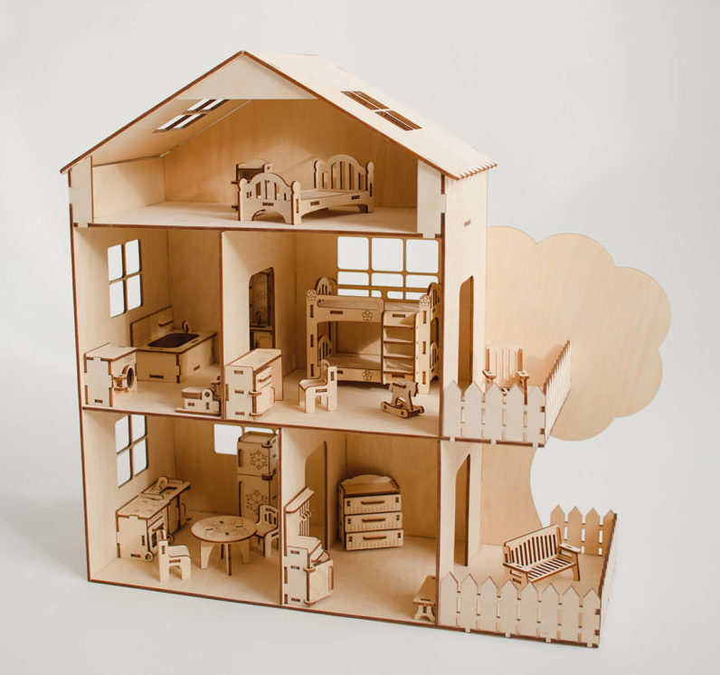 Всички видове играчки за най-малките винаги са били търсени като екологично чисти продукти. От тях се изработват коли, кубчета, дървени блокчета, фигурки на хора и животни. Интересна дървена изработка за деца е къщичка за кукли с отварящи се врати и прозорци.