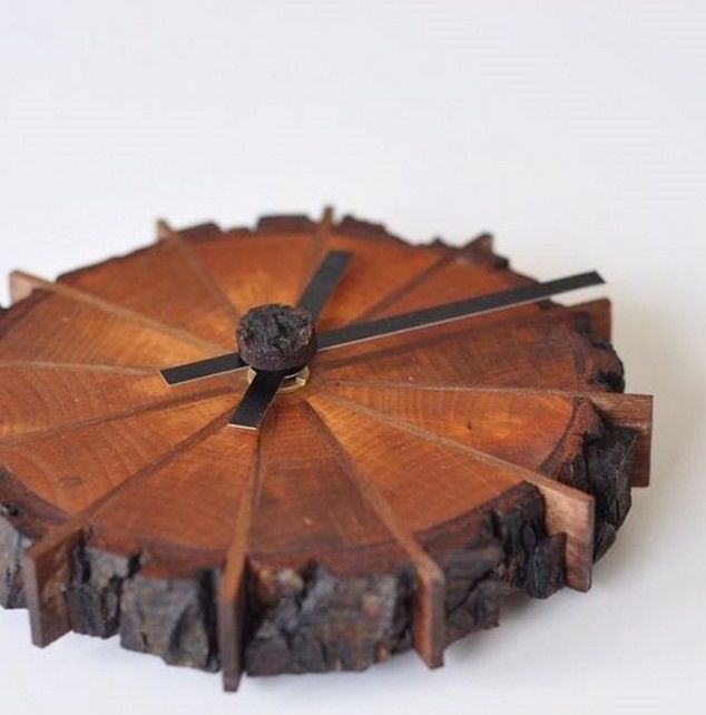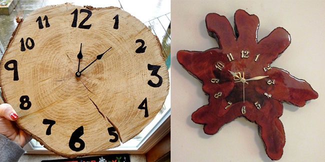 В интернет могат да се намерят многобройни примери за стенни часовници, изработени от разпиляна дървесина и други видове шперплат, дъски и фурнири.