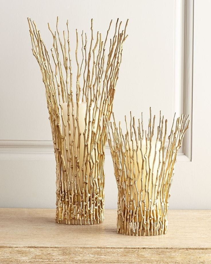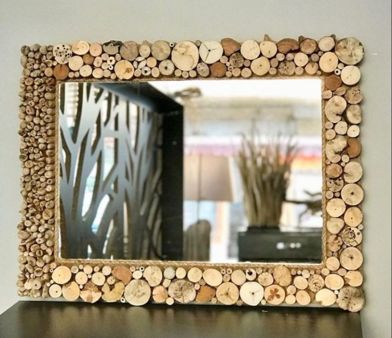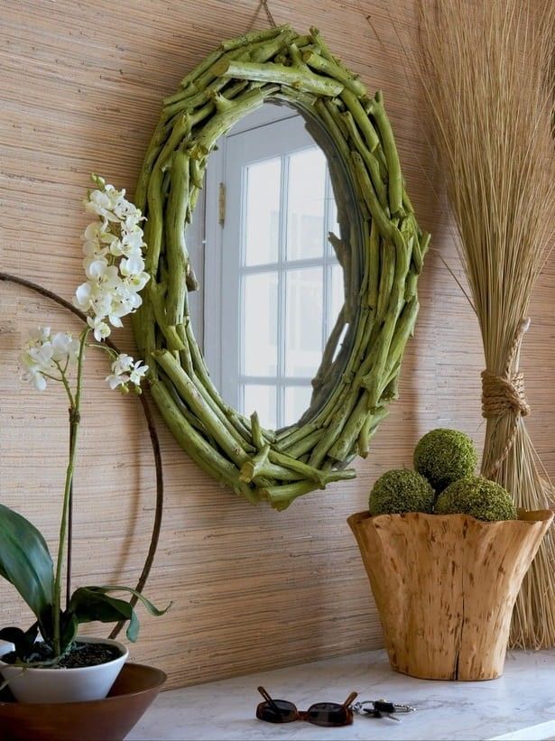Погледнете оригинално на стените на малки картини или снимки, поставени в рамки, изработени от боядисани клонки или нарязани летви. Украсете тоалетната маса с удобни издълбани кутии за съхранение на бижута.
