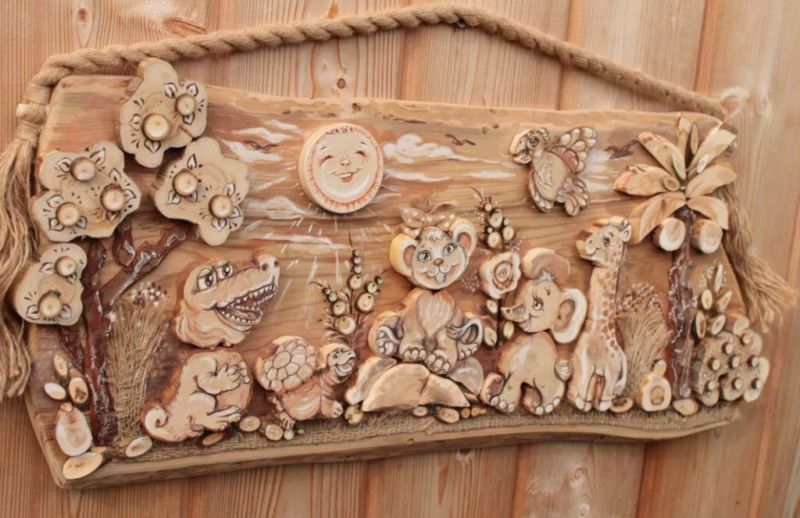 Издълбани пана със сложни мотиви или картини, изработени от нарязани дървени блокове, заемат специално място в творчеството на изтънчените художници.