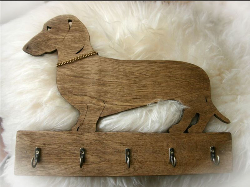 Можете да измислите различна форма, цвят или надпис за всеки ключодържател, който също може да бъде изработен оригинално от малки парчета дърво или летвички. Можете също така да използвате лакирани пирони от масивно дърво със завинтени метални държачи за ключове.