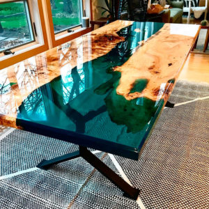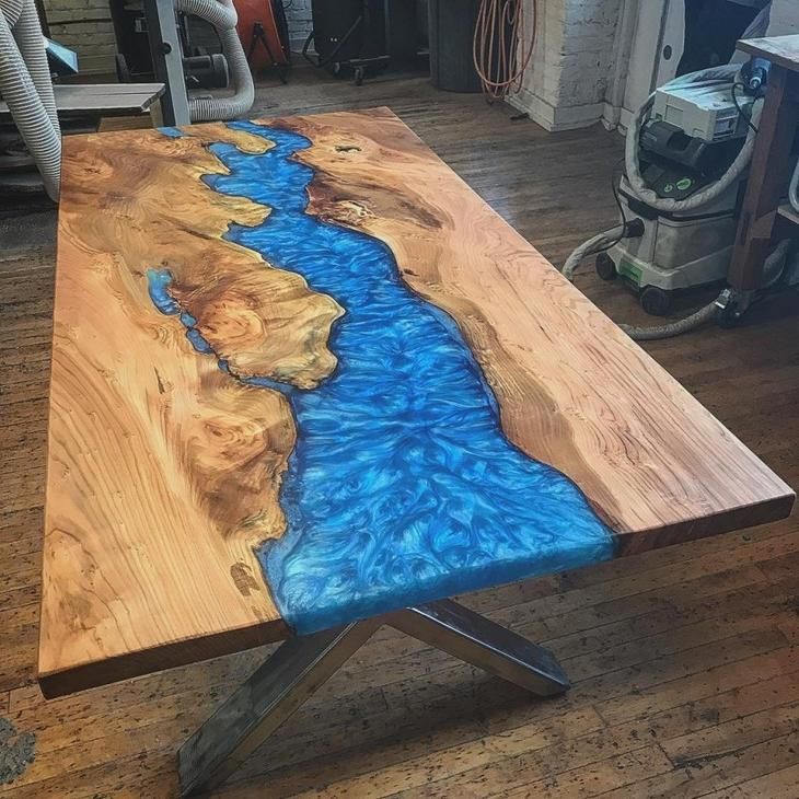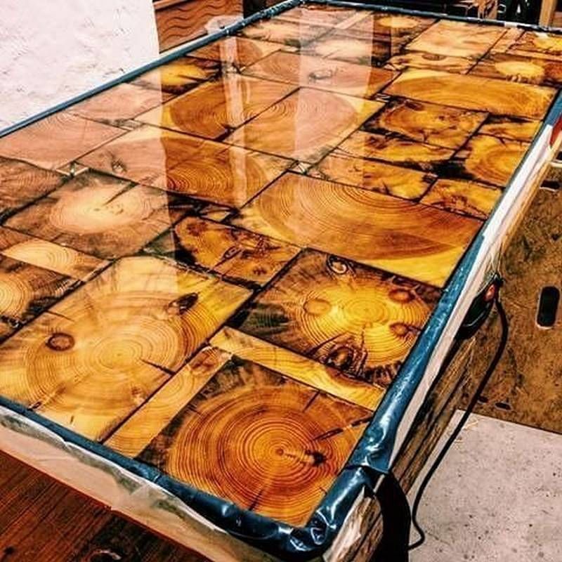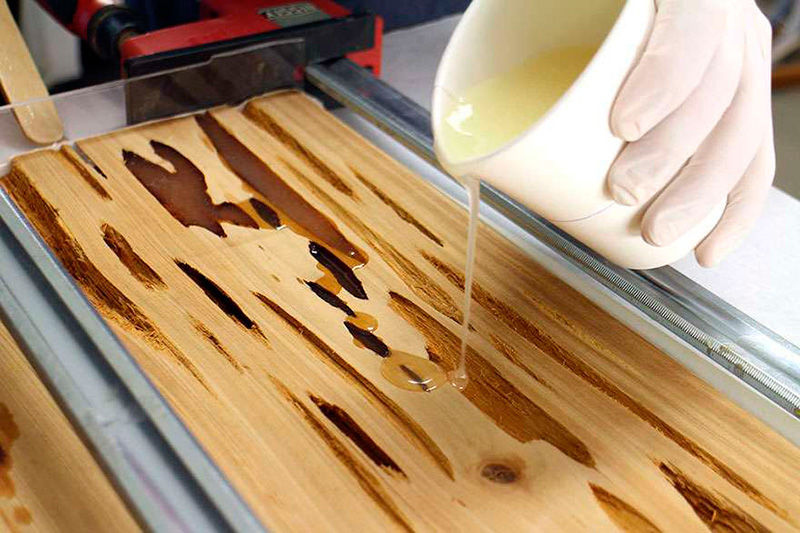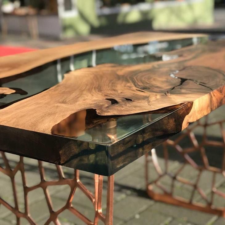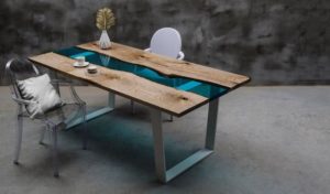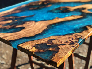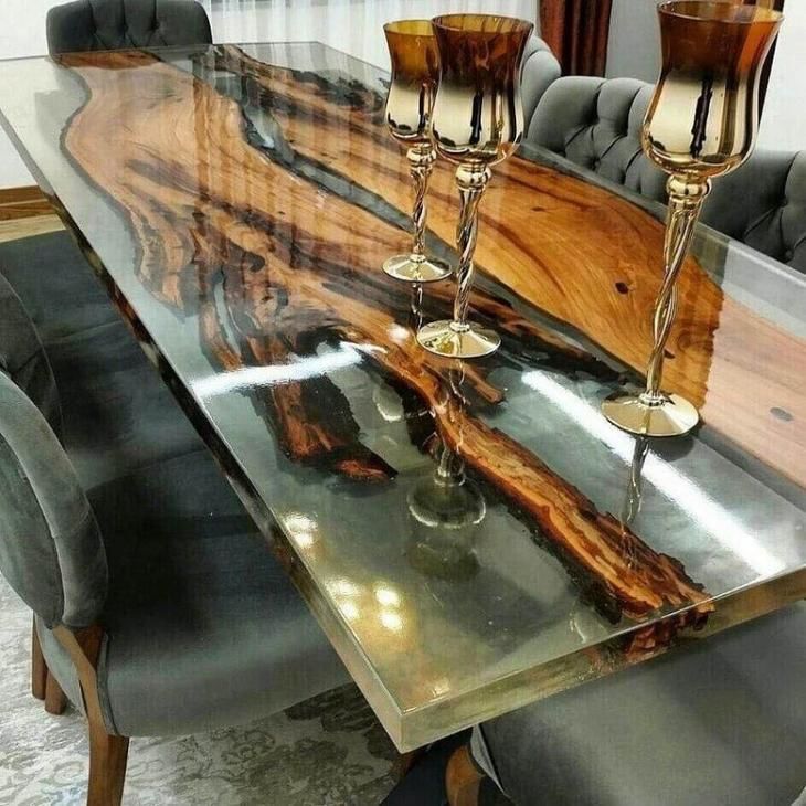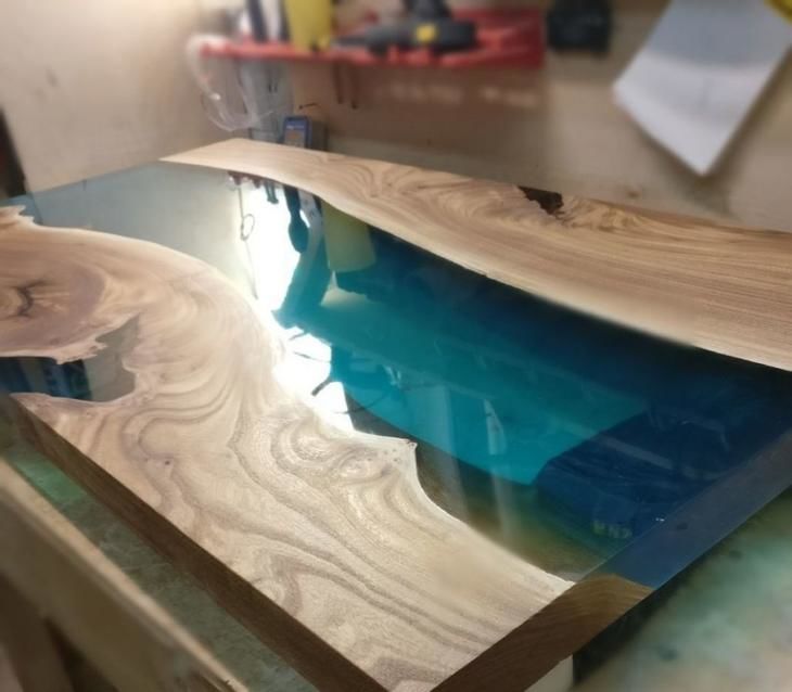 - Благодарение на специалната си консистенция епоксидната смола може да проникне във всички пукнатини и цепнатини, което позволява да се направи красив плот за маса у дома, например.