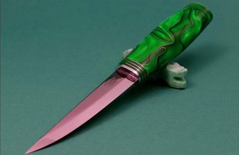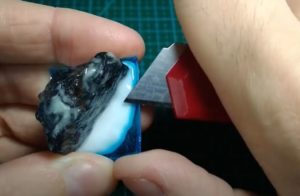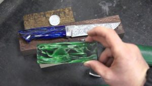 - След като полимерът се втвърди, дръжката се изважда от матрицата, избърсва се с парцал и се изрязва жлеб за острието с подходящ размер.
