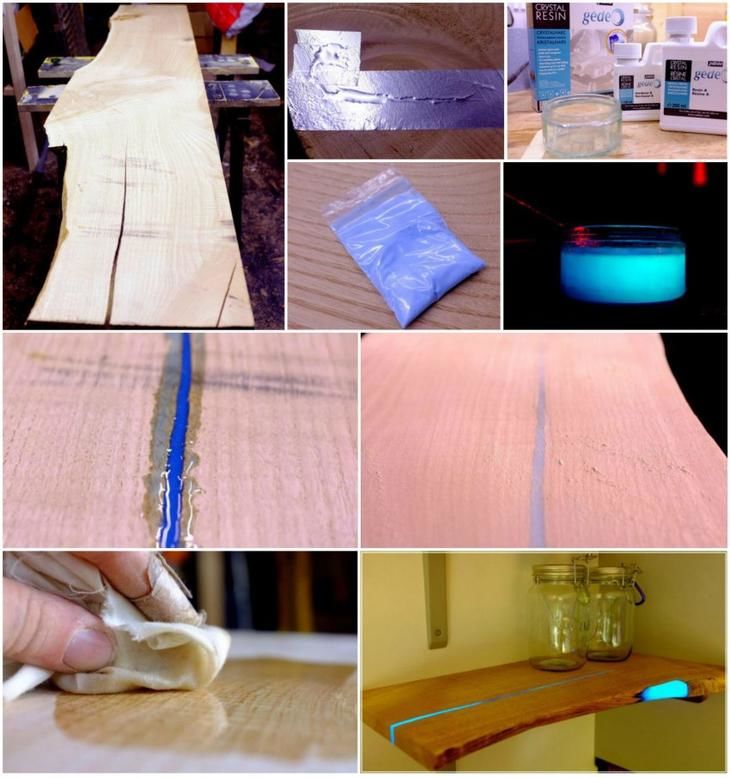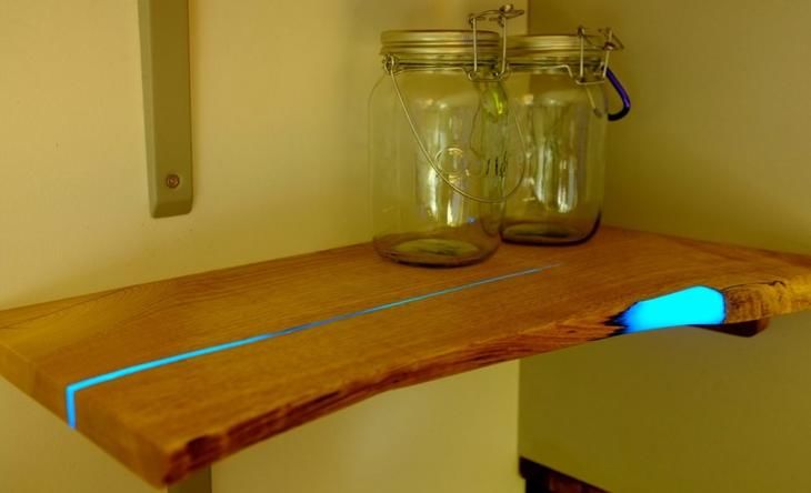 Друга практическа употреба на епоксидната смола е като светещ рафт. Процесът на изработване на епоксидна заготовка за дома не се различава от този на изработване на маса.