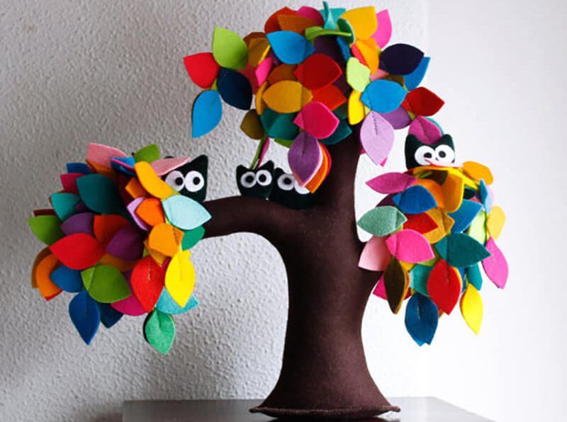 Децата могат да създадат интересни триизмерни и тристранни изделия от филц, като използват техники като апликиране, шиене и лепене.